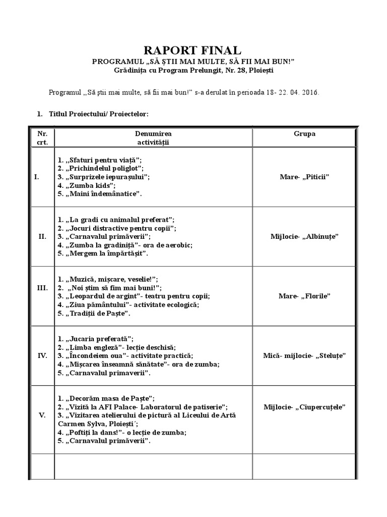 Raport Final școala Altfel Să știm Mai Multe Să Fim Mai Buni Scoala Gimnaziala