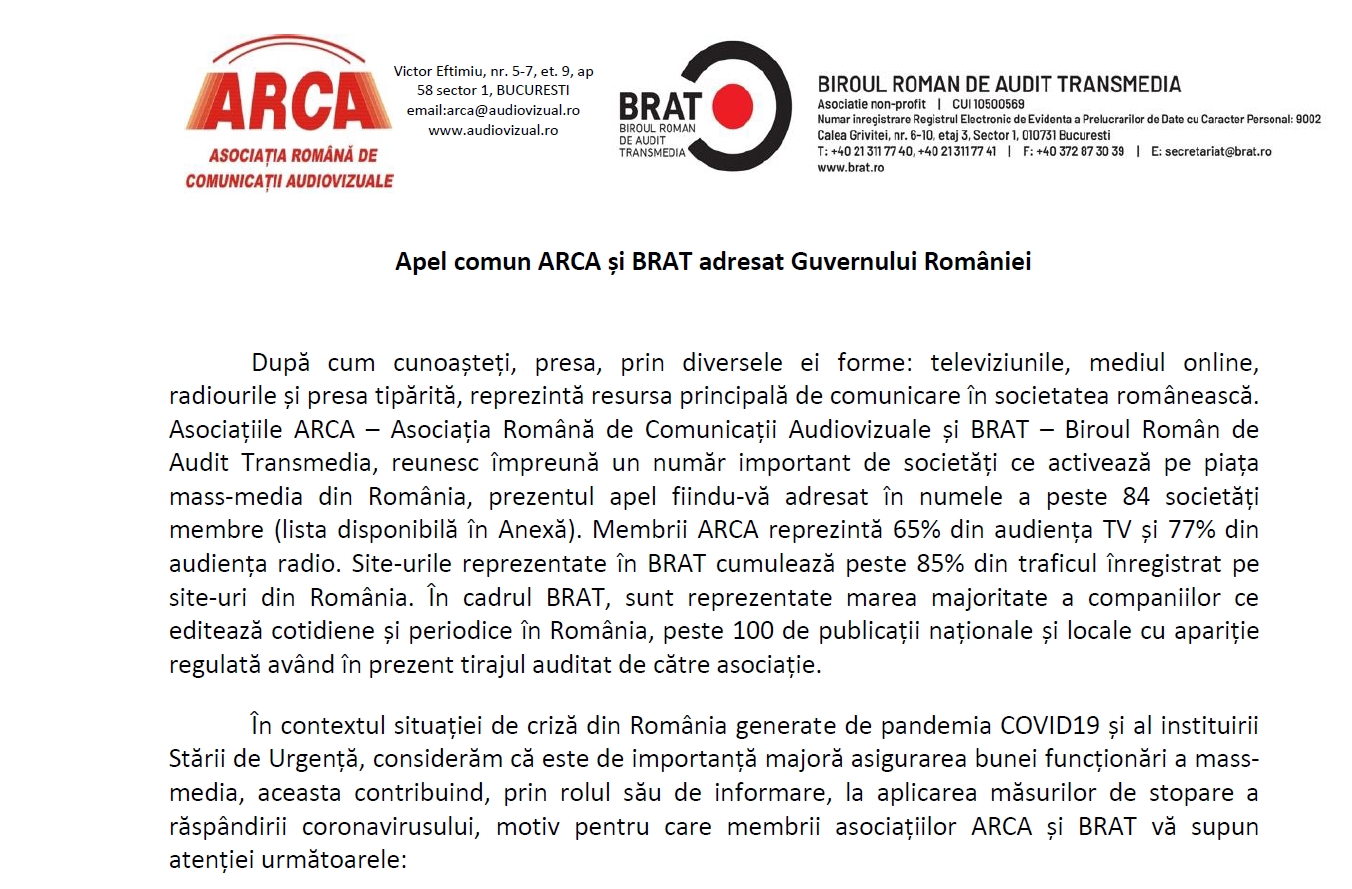 Apel Comun Arca și Brat Adresat Guvernului Romaniei Promotor