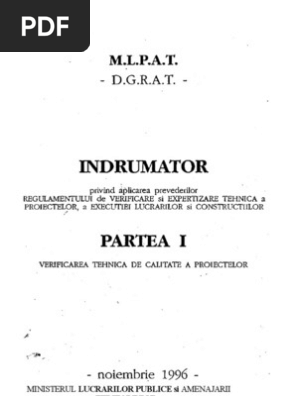 Mdrap a introdus în dezbatere publică un nou regulament de verificare şi expertizare tehnică de calitate a proiectelor a execuţiei lucrărilor şi a construcţiilor. Regulament de verificare şi expertizare tehnică. Regulament din 20 noiembrie 1995 de verificare şi expertizare tehnică de calitate a proiectelor a execuţiei lucrărilor şi a construcţiilor la data 09 jun 2003 a se vedea referinte de aplicare din reglementari tehnice din 2003 la data 11 jan 1996 actul a fost aprobat de hotarirea 925 1995 capitolul 1.