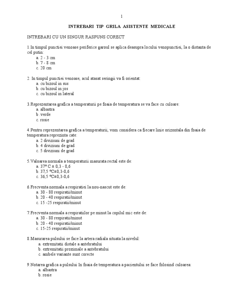 Intrebari Tip Grila Asistente Medicale