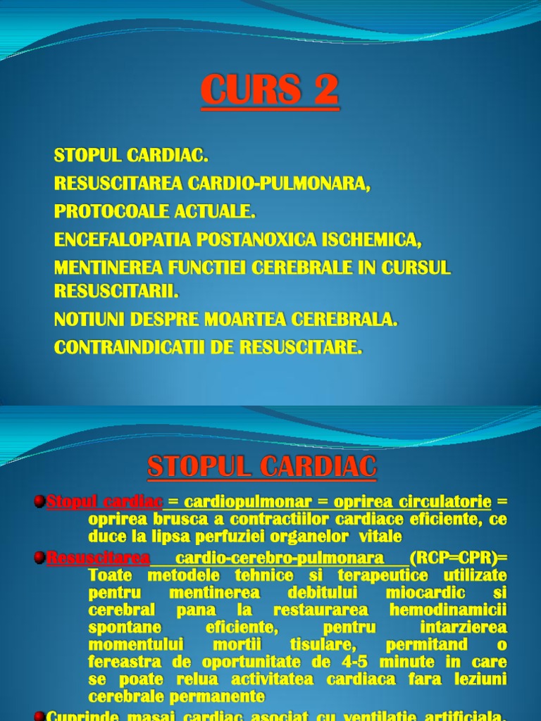 Resuscitarea cardio pulmonara rcp este o tehnica de prim ajutor utilizata in numeroase situatii de urgenta infarct miocardic sau inec in cazul in care victima nu mai respira sau prezinta o intrerupere a circulatiei sangelui. Resuscitarea imediată poate dubla sau tripla supravieţuirea după un episod de fibrilaţie ventriculară 10 13 3. în cazul unui stop cardio respirator orice secundă care trece fără ca inima să pompeze sânge poate însemna viață sau moarte. șansele de supraviețuire cresc.