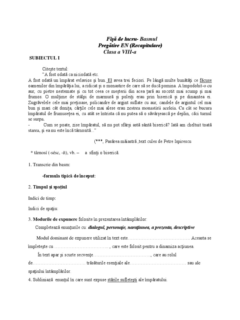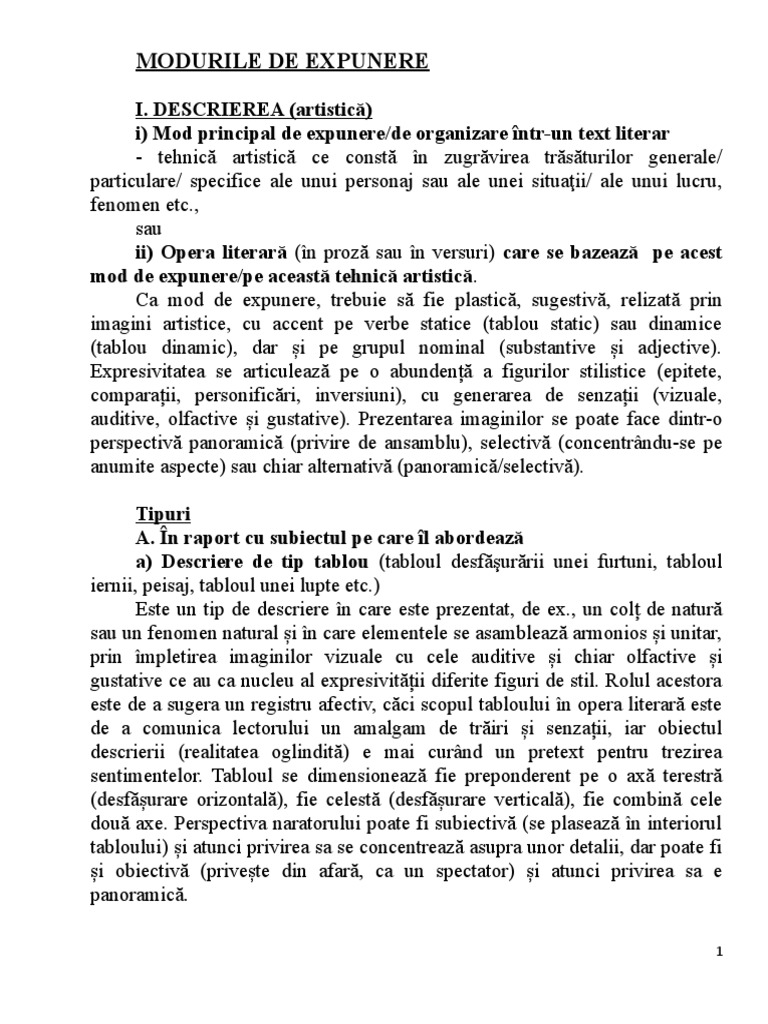 Subiectul Ii Bac Romana Modurile De Expunere