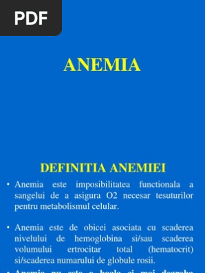 Sideremie scazuta cu hemoglobina normala. Valori critice 280 2550 µg dl sau 50 456 µmol l la copii cu intoxicatie acuta cu fier. Valoarea considerata normala pentru femei se afla intre 12 si 15 5 g dl iar pentru barbati valoarea normala se afla intre 13 5 si 17 5 g dl. Anemia nu este o boala propriu zisa ci o consecinta a altor. Anemia este o afectiune caracterizata printr o scadere a parametrilor care apreciaza cantitatea de eritrocite din circulatia sanguina numarul volumul si continutul in hemoglobina al acestora.