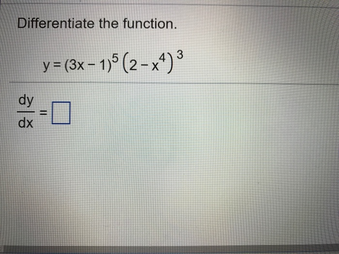 Solved Differentiate The Function Y 3x 1 5 2 X Chegg Com