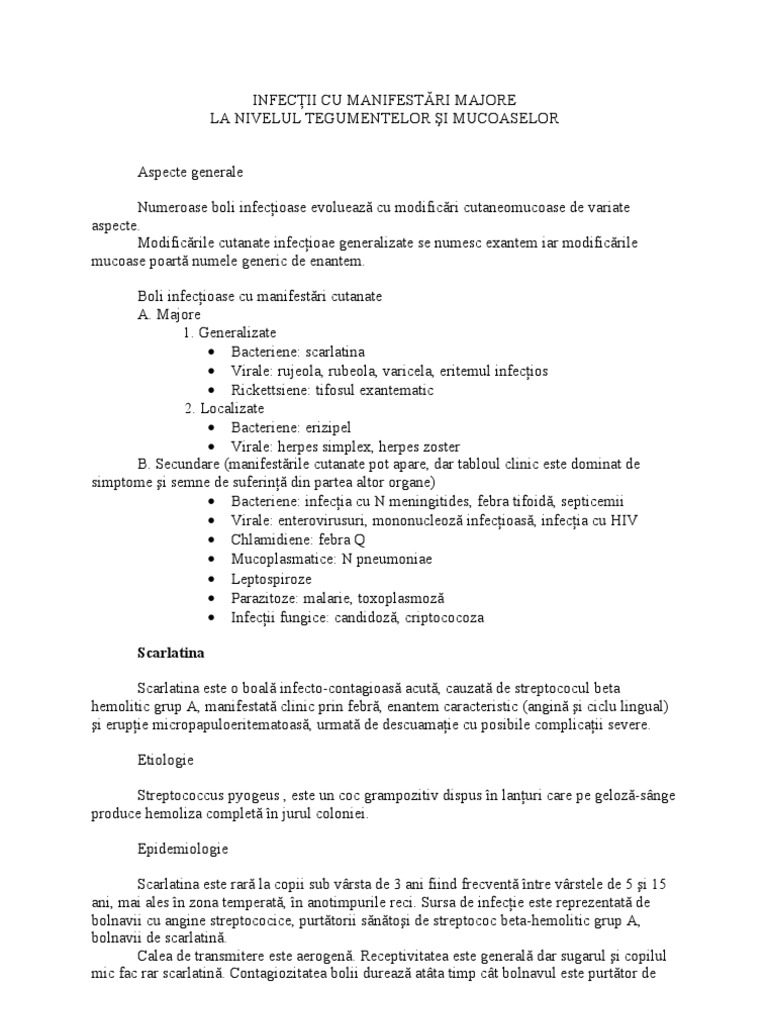 Infectii Cu Manifestari Majore La Nivelul Tegumentelor Si Mucoaselor
