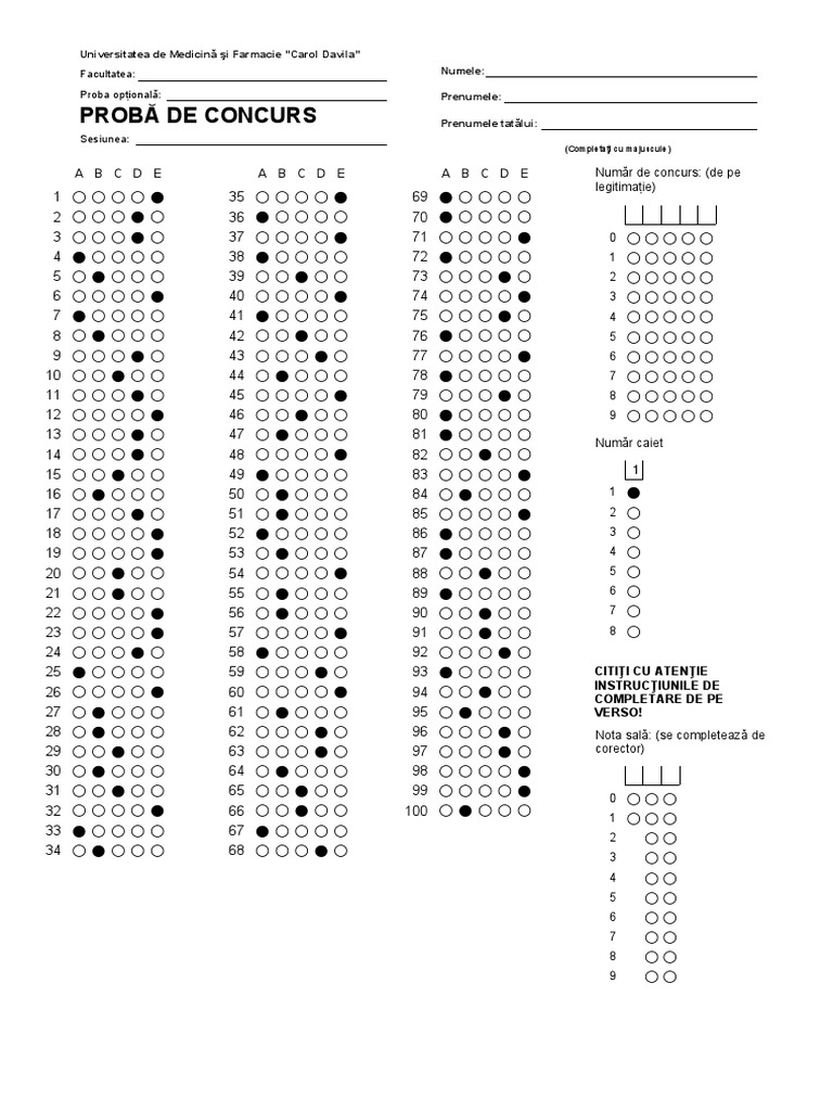 Grile Admitere 2015 Facultatea De Medicina Si Farmacie Oradea Facultatea De Medicina Sl Farmacie Specializarea Medicina Admitere Iulie 2015 Gril Rspunsuri Corecte Numr De Concurs Pdf Document