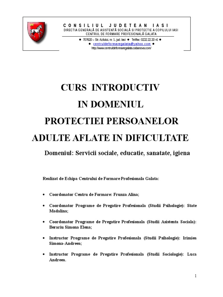 Curs Introductiv In Domeniul Protectiei Persoanelor Adulte Aflate In Dificultate